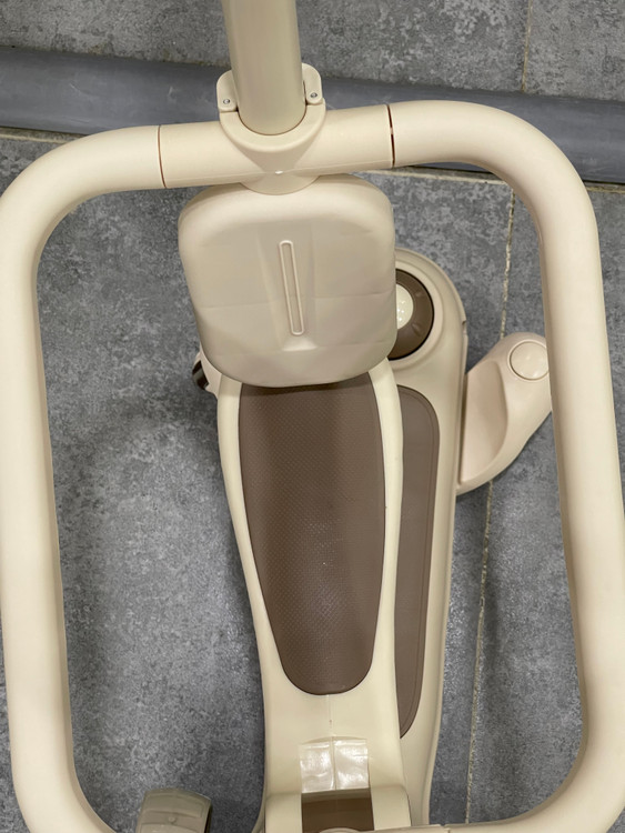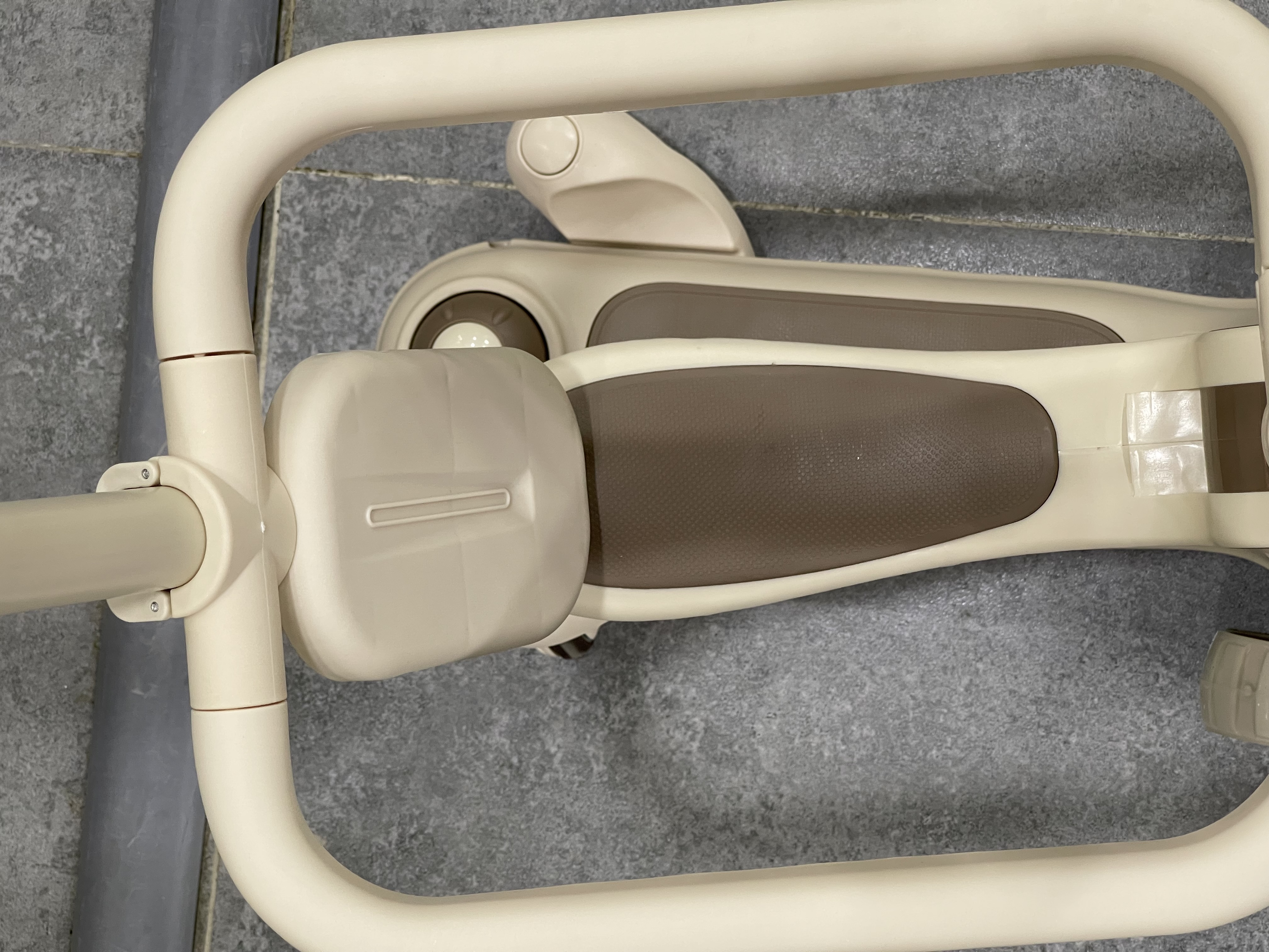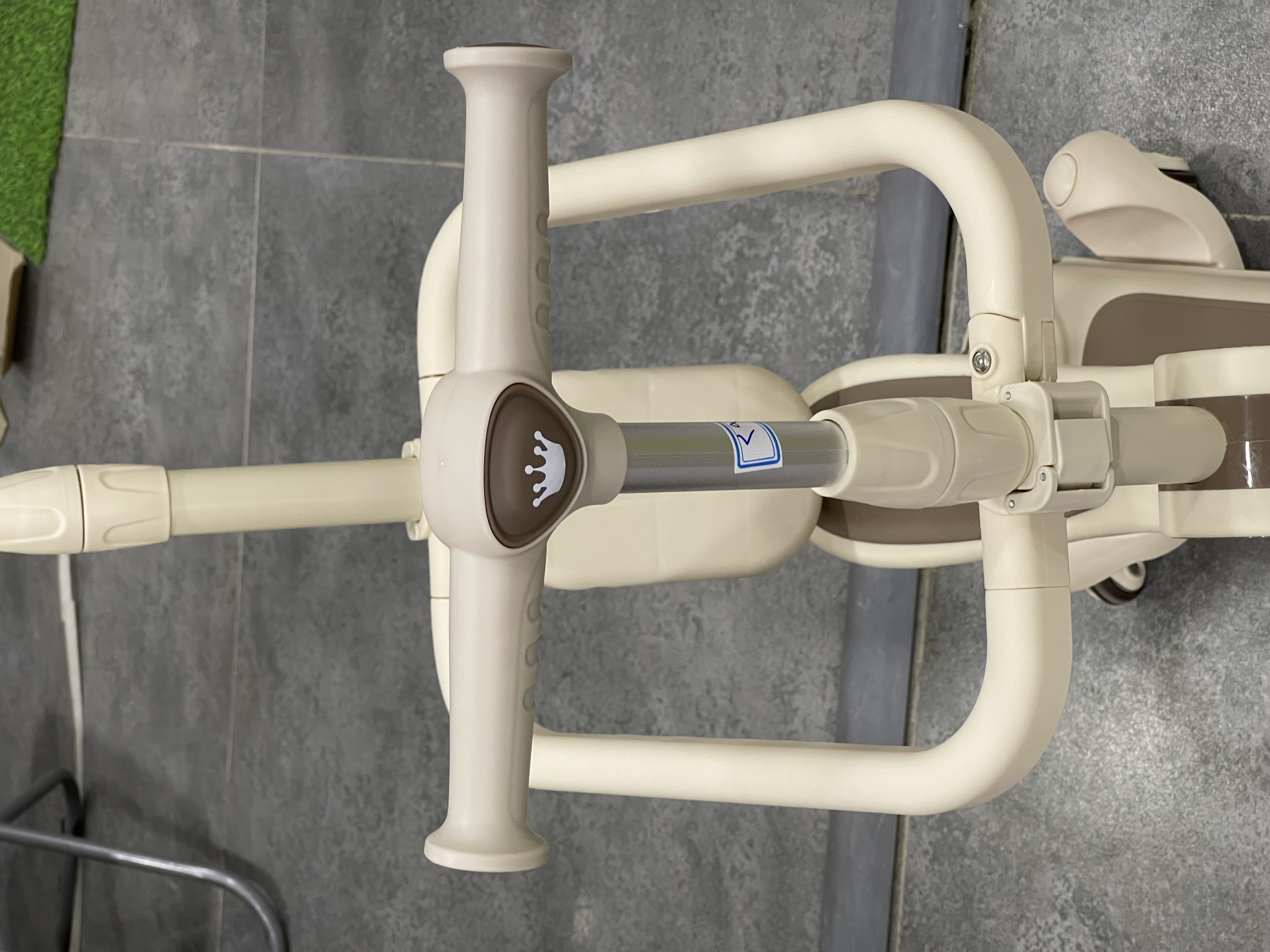 ۱. حالت واکر و روروئک (با صندلی و حفاظ): برای کودکان نوپا و سنین ۱ تا ۳ سال که هنوز کاملاً به تعادل نرسیدهاند. صندلی نرم و حفاظ ایمنی کمربندی، امنیت کامل را فراهم میکند و کنترل کامل حرکت در دست والدین است.