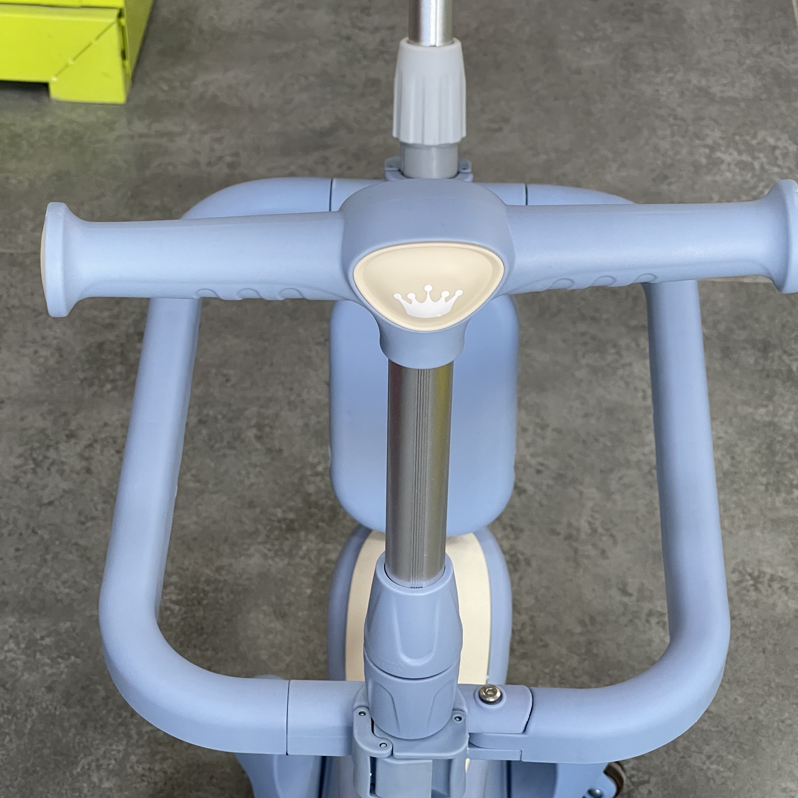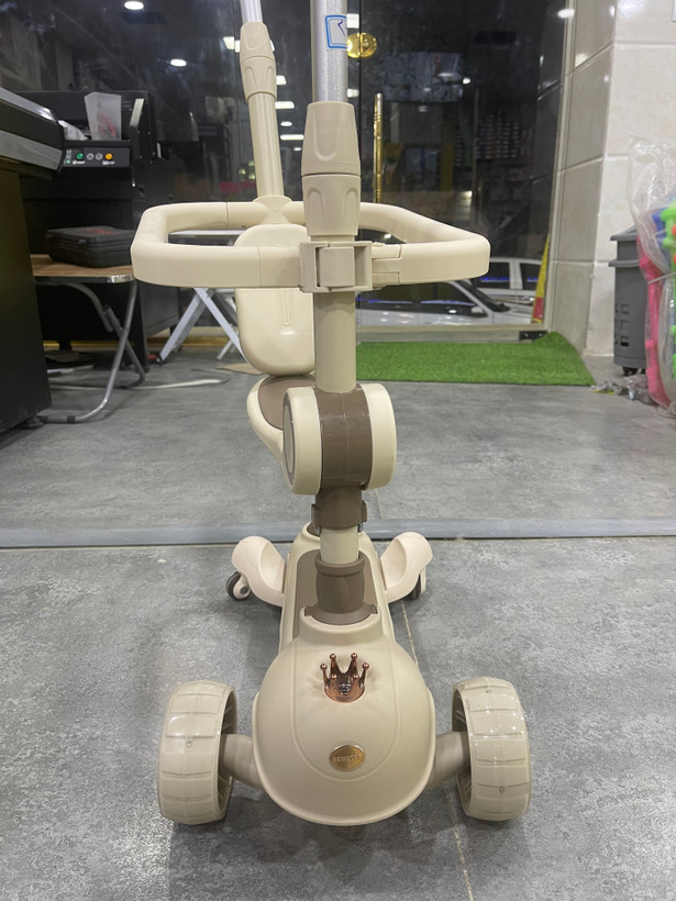 ۳. حالت اسکوتر حرفهای (ایستاده): برای کودکان ۵ تا ۱۰ سال. صندلی و دسته هدایت والدین را بردارید تا یک اسکوتر ۳ چرخ پایدار و باکیفیت در اختیار داشته باشید.