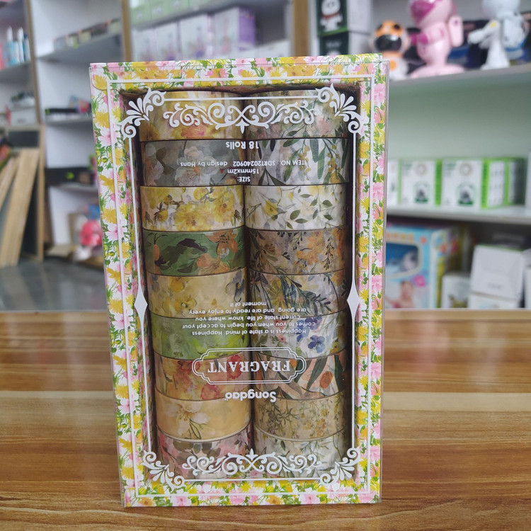 چسب واشی ۱۸ تایی طرح گلدار یک مجموعه کامل و زیبا از نوارهای تزیینی است که با طرحهای متنوع و گلدار، جلوهای خاص و هنری به دفتر، پلنر و وسایل تزیینی شما میبخشد. این چسبها از جنس کاغذی باکیفیت تولید شدهاند و بهراحتی روی سطوح مختلف میچسبند و بدون باقی گذاشتن اثر، جدا میشوند.