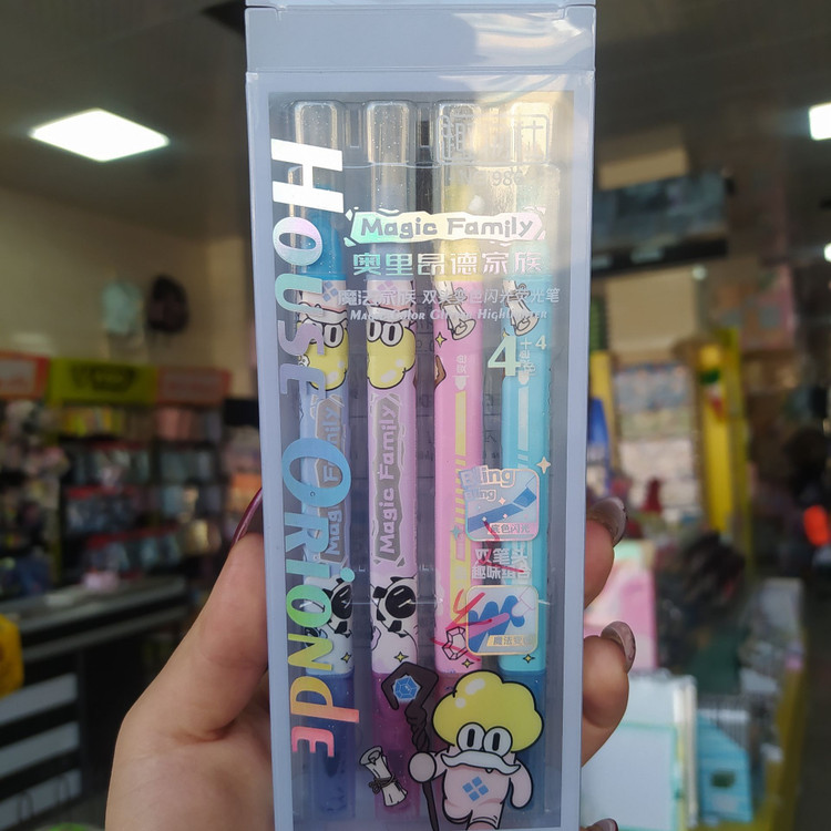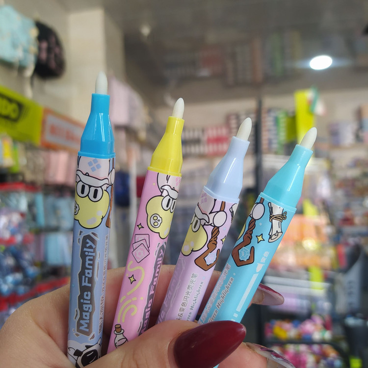 دو سر و کاربردی: یک سر این قلم، هایلایتر اکلیلی با رنگهای پاستلی و جذاب است و سر دیگر آن پاککن جادویی که فقط اثر همین هایلایتر را پاک میکند.