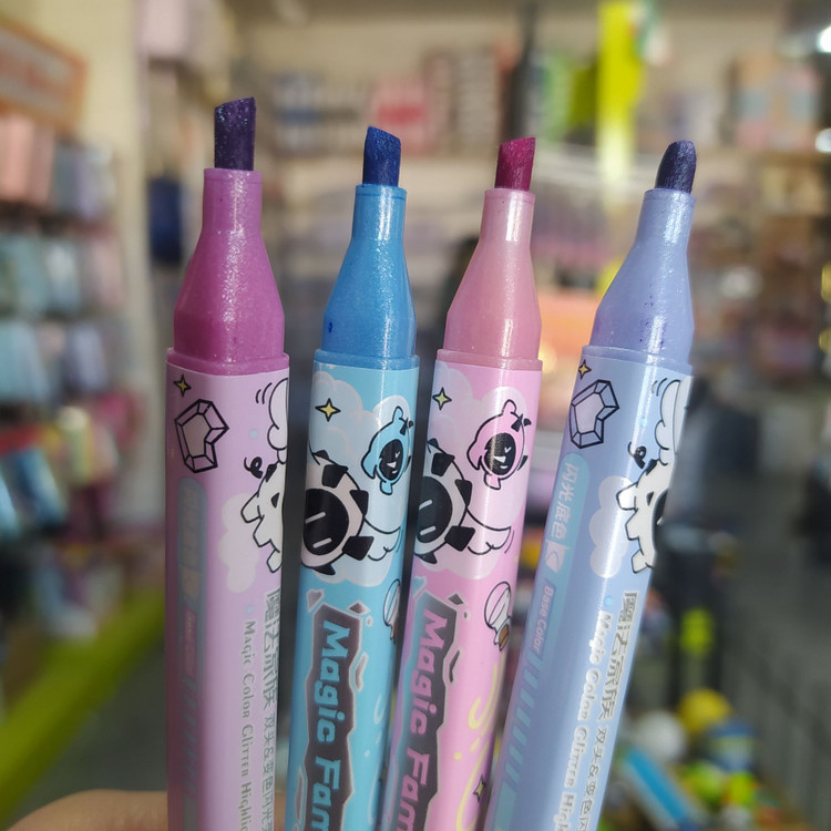 درخشش اکلیلی (Glitter): برخلاف هایلایترهای معمولی، این مدل دارای ذرات ریز اکلیلی است که زیر نور میدرخشد و نکات مهم جزوه شما را متمایز میکند.