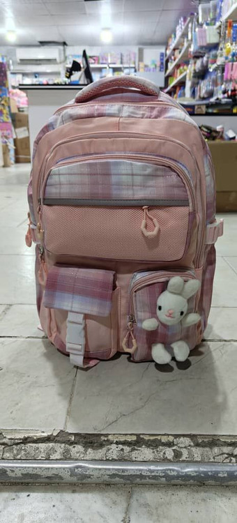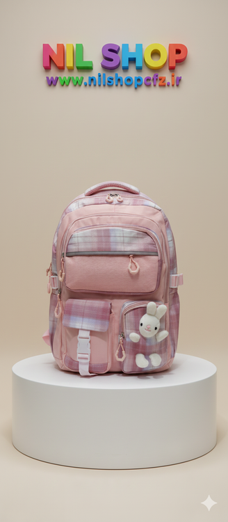 عنوان: کولهپشتی دخترانه مدل Bunny Plaid – دنیایی از لطافت و نظم!