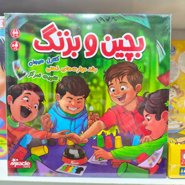 بازی فکری بچین و بزنگ یک بازی چالشی و هیجانانگیز برای 2 تا 4 نفر است که به تقویت تمرکز، سرعت عمل و هماهنگی دست و چشم کمک میکند و انتخابی عالی برای دورهمیهای خانوادگی و دوستانه محسوب میشود. این بازی شامل 5 رنگ لیوان (زرد، قرمز، آبی، مشکی و سبز)، 24 کارت الگو با تصاویر مختلف و یک عدد زنگ برای اعلام برنده هر دور است. روش بازی به این صورت است که به هر بازیکن 5 لیوان رنگی داده میشود، کارتها بر زده شده و در یک دسته قرار میگیرند و زنگ بازی در مرکز قرار میگیرد تا همه بازیکنا ..