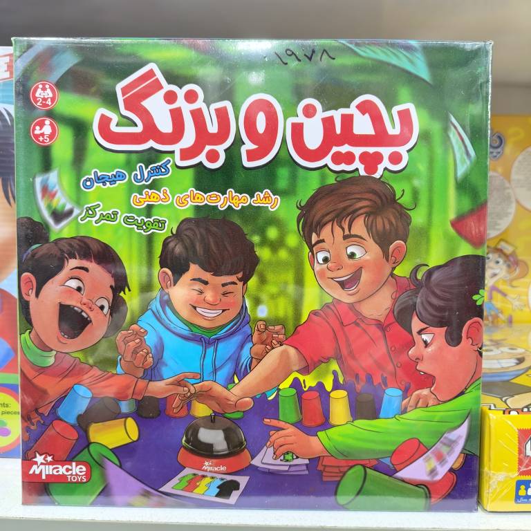 بازی فکری بچین و بزنگ یک بازی چالشی و هیجانانگیز برای 2 تا 4 نفر است که به تقویت تمرکز، سرعت عمل و هماهنگی دست و چشم کمک میکند و انتخابی عالی برای دورهمیهای خانوادگی و دوستانه محسوب میشود. این بازی شامل 5 رنگ لیوان (زرد، قرمز، آبی، مشکی و سبز)، 24 کارت الگو با تصاویر مختلف و یک عدد زنگ برای اعلام برنده هر دور است. روش بازی به این صورت است که به هر بازیکن 5 لیوان رنگی داده میشود، کارتها بر زده شده و در یک دسته قرار میگیرند و زنگ بازی در مرکز قرار میگیرد تا همه بازیکنا ..