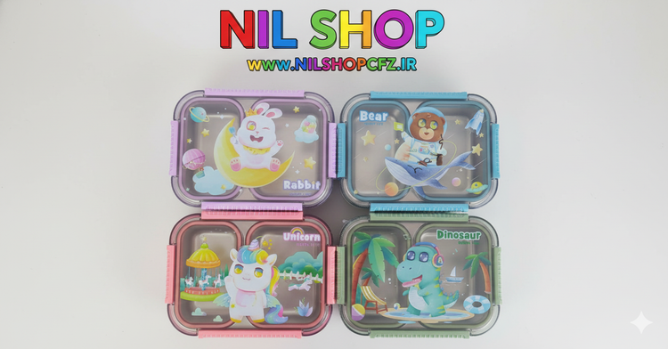 طراحی جذاب کودکانه: این لانچ باکس در چهار طرح زیبا و کارتونی شامل خرگوش، خرس، تک شاخ (یونیکورن) و دایناسور عرضه میشود که هر کدام رنگبندی شاد و دلنشینی دارند تا اشتهای کودکان را تحریک کنند و غذا خوردن را به یک سرگرمی تبدیل کنند.